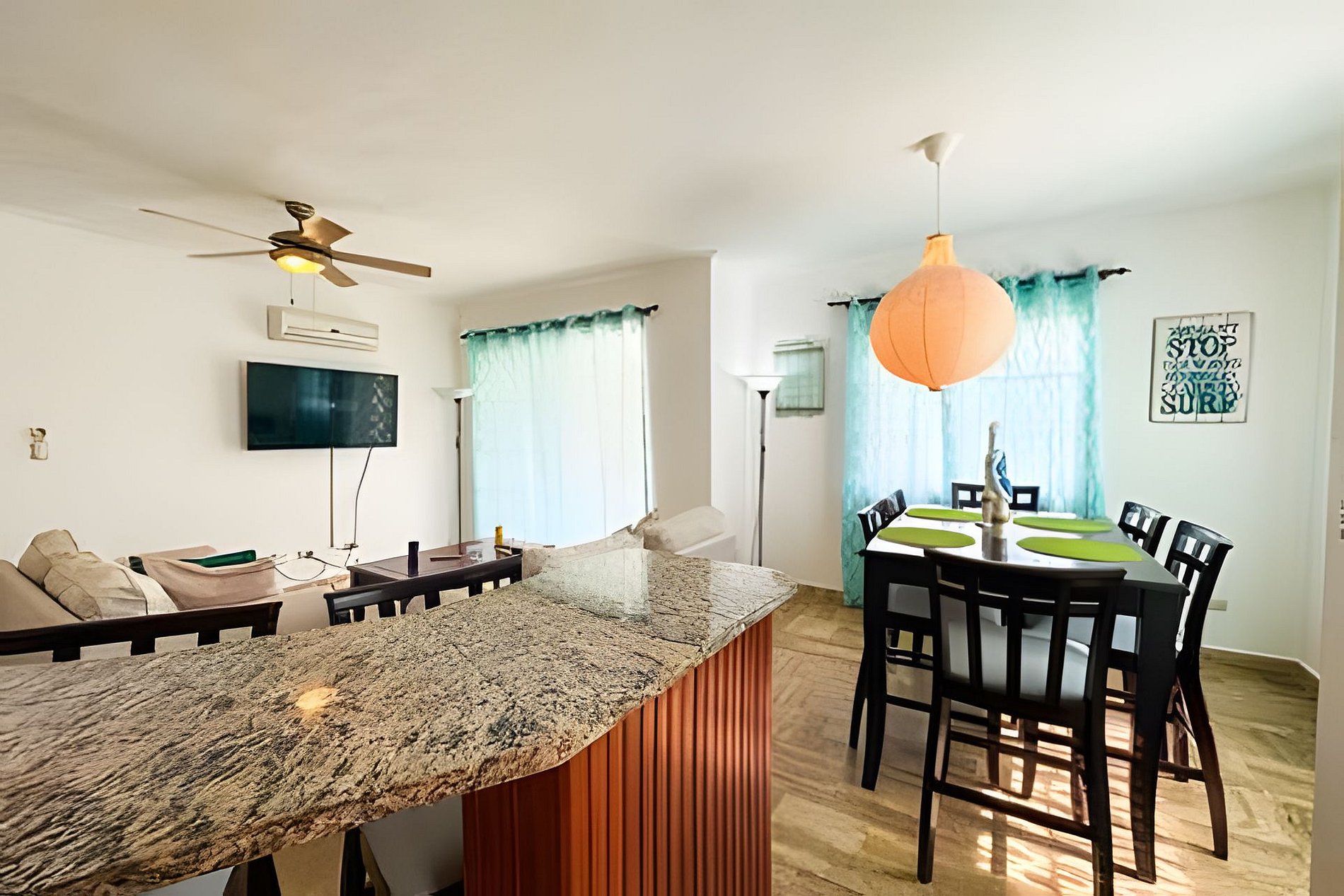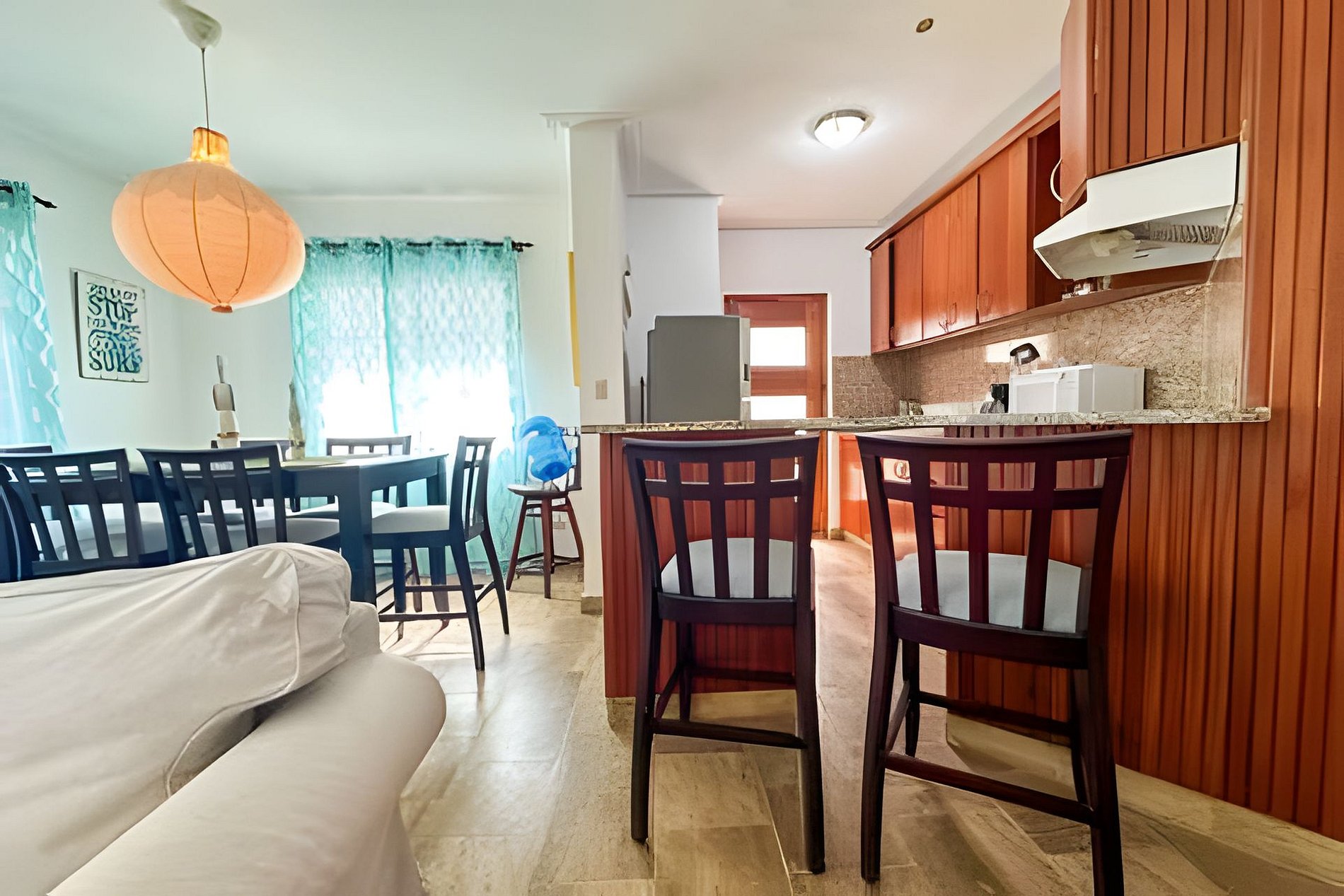La ubicación del apartamento es ideal, ya que se encuentra cerca de tiendas, restaurantes y bares locales. Además, está a solo 10 minutos a pie de la playa, para que puedas disfrutar del sol, la arena y el mar en cualquier momento que desees. Precio electricidad: USD$7 a USD$10 por dia USD$49 a USD$70 por semana USD$217 a USD$310 por mes *Precios estimados