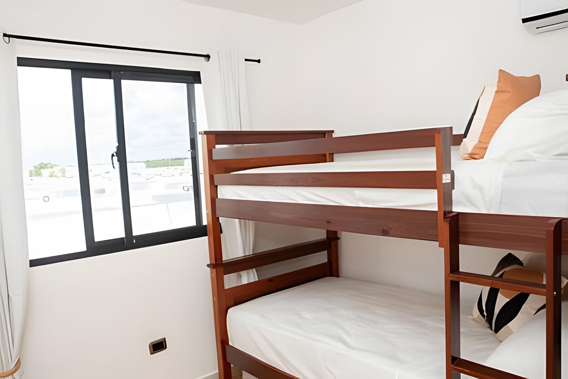 Villa de dos nivel, primer nivel encontraras sala, cocina y comedor, baño compartido o de visita con ducha, área de lavado, piscina, muebles de exterior ideal para compartir entre amigos o familia. Segundo nivel, 3 habitaciones. La habitación principal con una cama queen baño privado, closet, Tv Smart y un balcón con dos sillas y una mesa de centro para sentarte a ver el amaneces o atardecer con una buena taza de cafe. Segunda habitación Cama Queen y un pequeño balcón con vista a la piscina y Tv Smart. Tercera habitación un camarote de dos camas individuales con su baño compartido, todas las habitaciones tienen aire acondicionado. Toda la casa tiene Screens para evitar mosquitos y moscas.