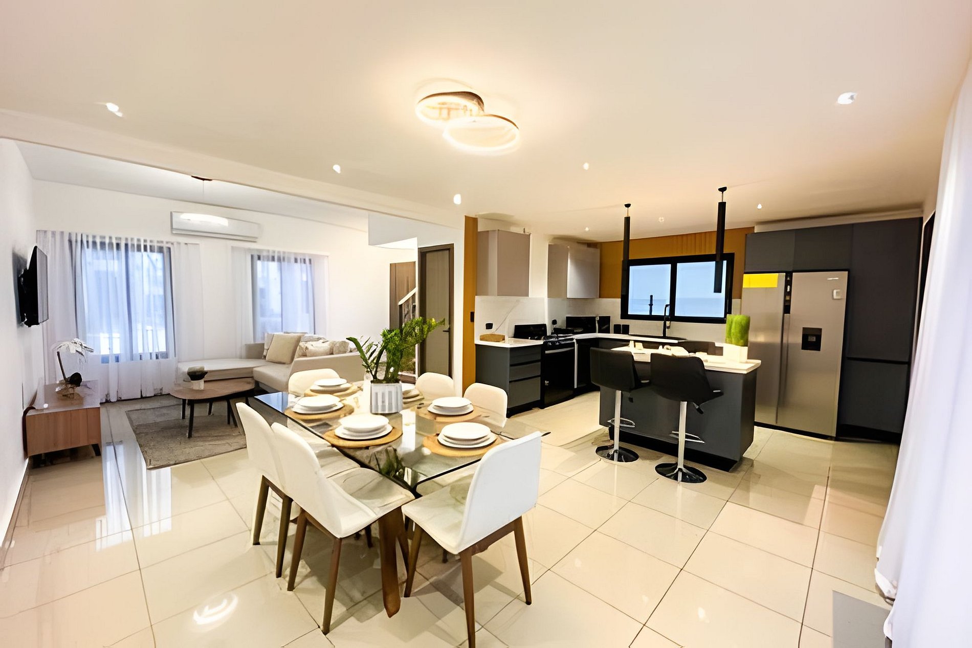 ¿Qué hará que sus huéspedes se sientan cómodos? Cada detalle está pensado para tu comodidad: desde las camas lujosas y la decoración elegante en las tres habitaciones espaciosas, hasta la cocina totalmente equipada y las áreas de convivencia abiertas que invitan a la relajación y el entretenimiento. Además, contarás con aire acondicionado, WiFi de alta velocidad y televisión de pantalla plana para que te sientas como en casa.