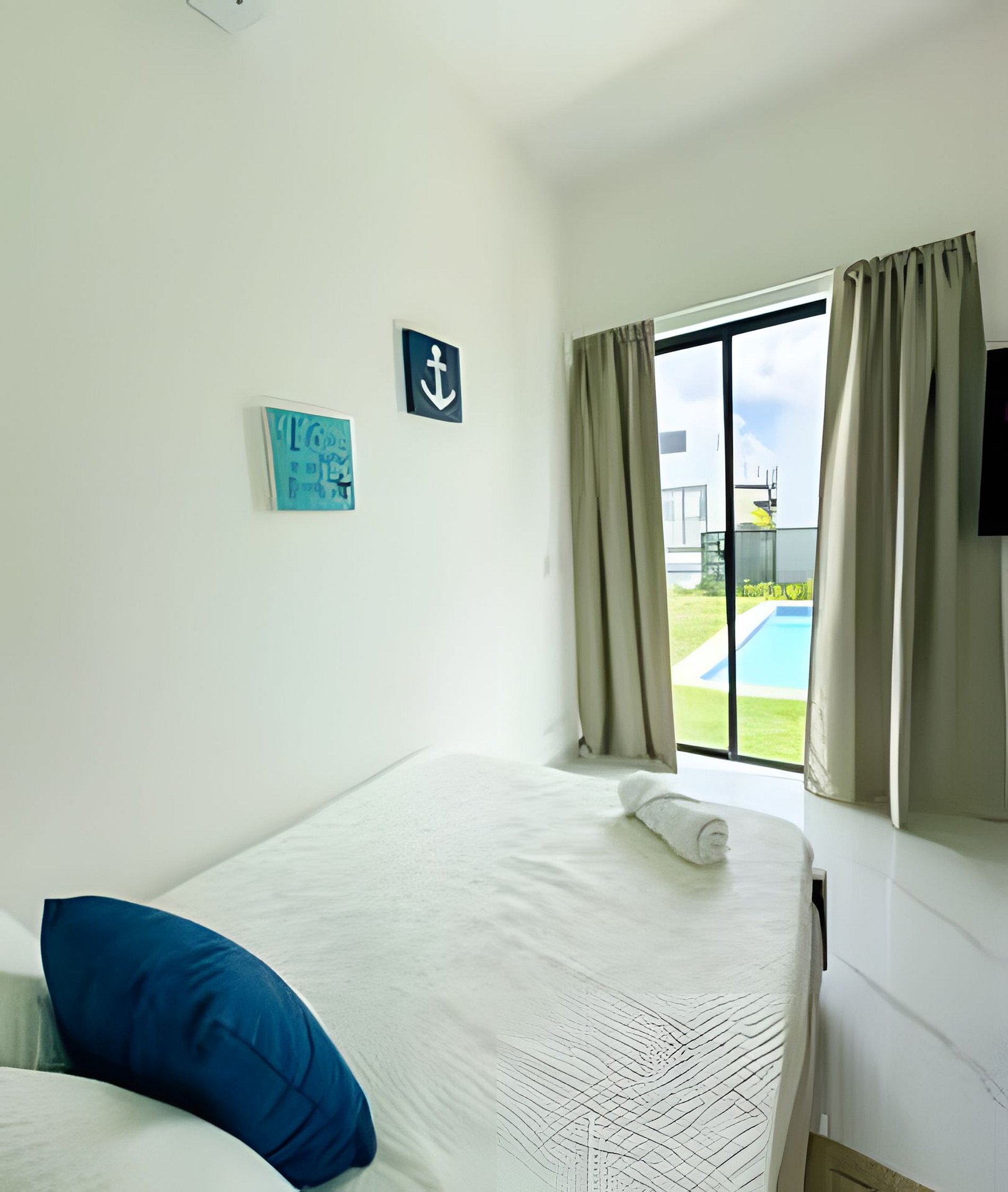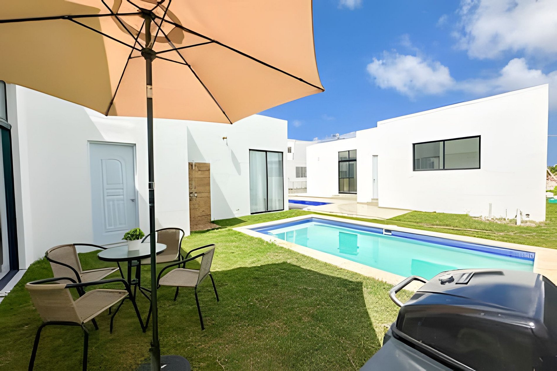 Villa encantadora ideal para familias o amigos. *Sala con aire acondicionado *TV Smart *Cocina equipada *Comedor *Wifi *Baño compartido o de visita en el área de la piscina. *Area de lavado *Piscina *Ducha de exterior *Juego de exterior y un patio. 2 habitaciones: * La habitación principal con dos cama Full, baño privado Y TV. * La segunda habitación cama queen, un sofá cama con su baño privado y TV. *Todas las habitaciones tienen aire acondicionado.
