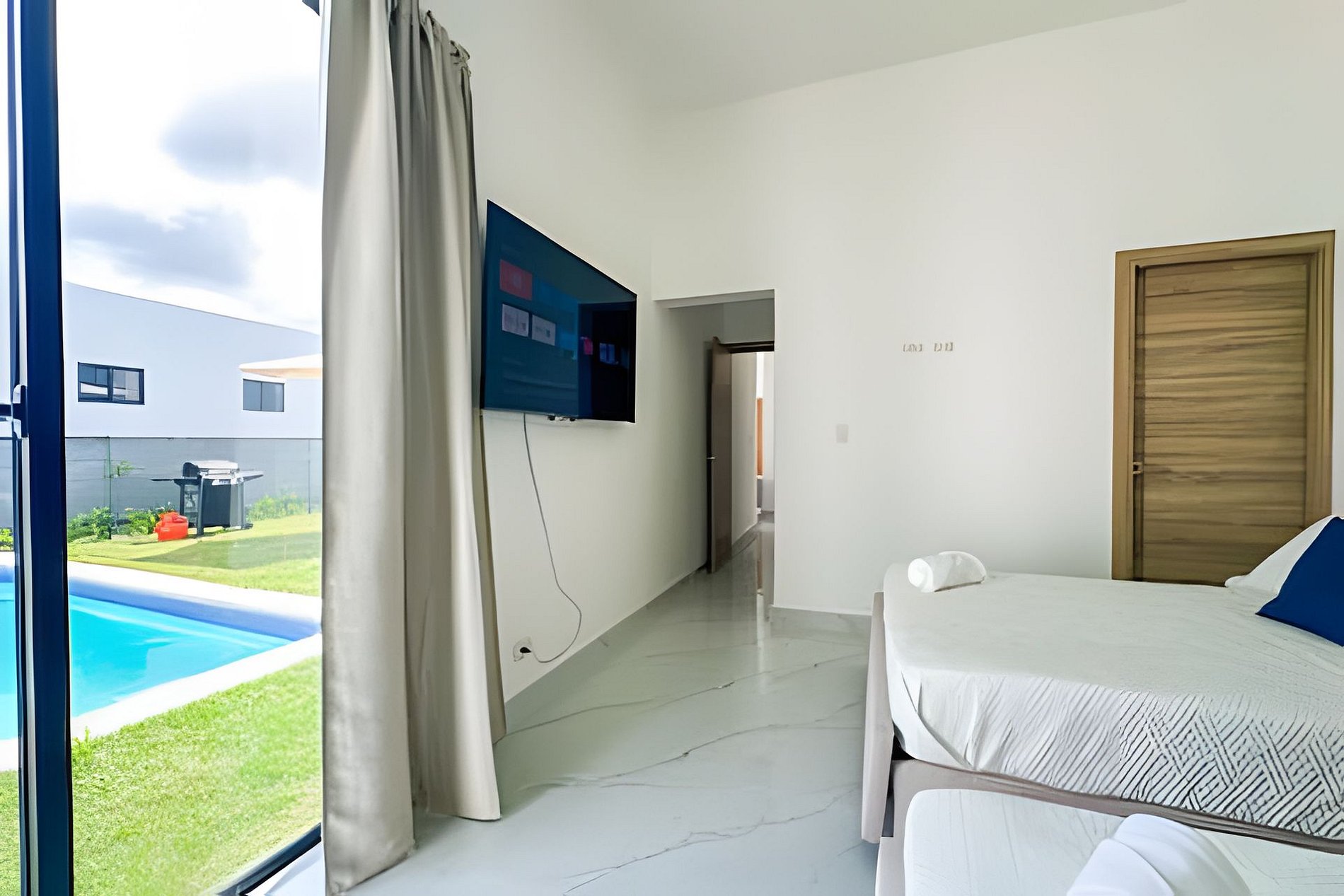 Villa encantadora ideal para familias o amigos. *Sala con aire acondicionado *TV Smart *Cocina equipada *Comedor *Wifi *Baño compartido o de visita en el área de la piscina. *Area de lavado *Piscina *Ducha de exterior *Juego de exterior y un patio. 2 habitaciones: * La habitación principal con dos cama Full, baño privado Y TV. * La segunda habitación cama queen, un sofá cama con su baño privado y TV. *Todas las habitaciones tienen aire acondicionado.